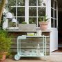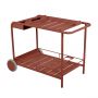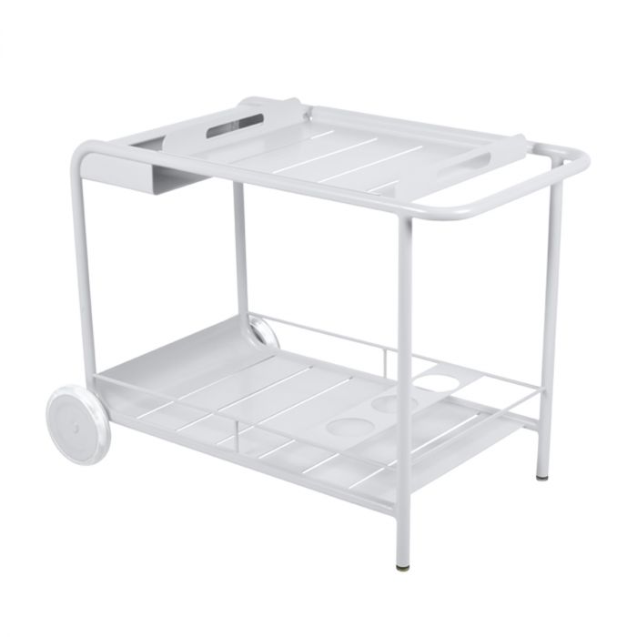 Desserte Luxembourg de Fermob par Frédéric Sofia. Cette desserte-bar au plateau amovible, idéale pour le service, vous suivra partout grâce à ses 2 roues. Elle combine l'essentiel : l'esthétisme et la praticité avec sa conception astucieuse (plateau amovible, rangement pour les bouteilles, etc.) ! Entièrement réalisée en aluminium, cette desserte roulante résiste aux conditions extérieures, même les plus rudes, et se déplace facilement. Elle trouve évidemment particulièrement bien sa place lorsqu'elle accompagne un ensemble table et chaises Luxembourg : astucieux rappels déclinables en une multitude de couleurs.