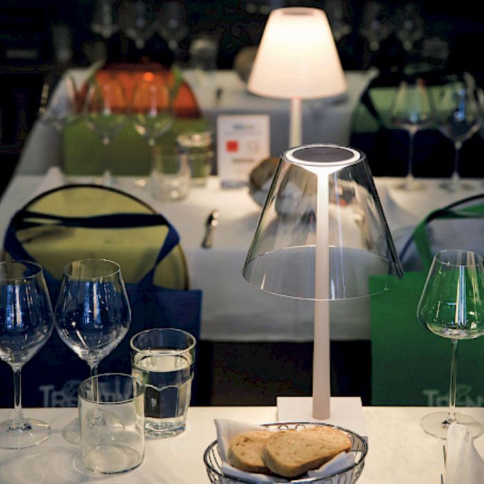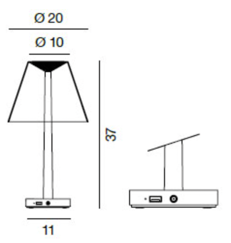 Dina+ est une lampe de table composée d'un diffuseur en polycarbonate et d'une structure en aluminium qui supporte la LED et les optiques en polycarbonate. Sur la base de la lampe, a été inséré un bouton pour le réglage de la lumière et une prise USB pour recharger un appareil électronique. Dina + est également équipé d'une batterie rechargeable qui lui permet d'être utilisé et déplacé librement dans la maison, dans le jardin ou partout où vous avez besoin de lumière, sans avoir à la brancher.