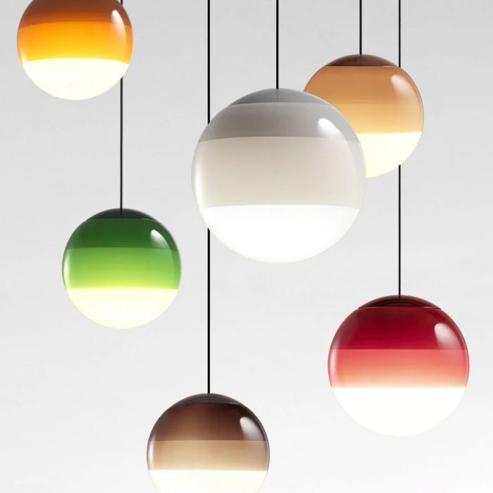 La nouvelle suspension Dipping Light se débarrasse de tout pour ne garder que l'essentiel, avec la couleur au centre de la scène. Lorsque vous utilisez plusieurs lampes pour créer une composition, l'effet visuel est fascinant. Cette nouvelle version est disponible en trois tailles, avec des diamètres de 12,5, 20 et 30 cm.