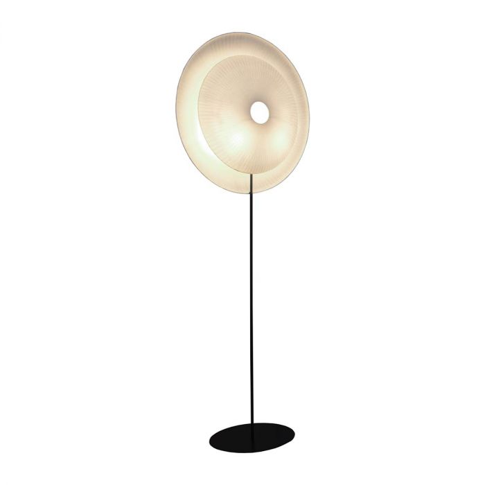 Élégante et classique, la Diva diffuse une lumière douce et raffinée. Une structure légère en acier aimanté supporte une grande coupole de papier. Une autre coupole plus petite et inversée projette la lumière sur la partie supérieure.