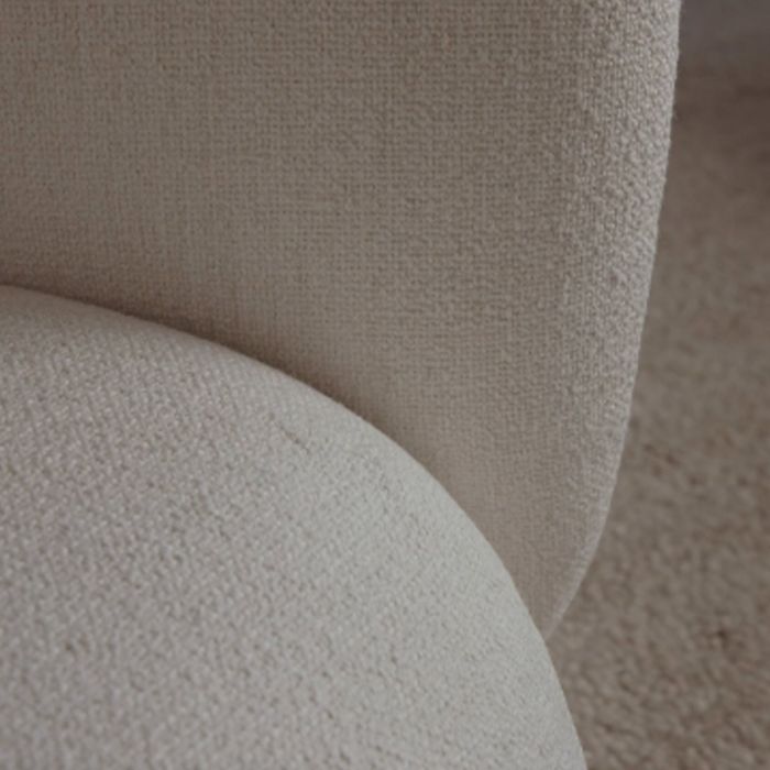Matériaux : Acier, mousse moulée avec structure en bois, polyéthylène basse densité, tissu bouclé (35% acrylique, 24% polyester, 19% viscose, 14% coton, 5% lin et 3% autres fibres.)