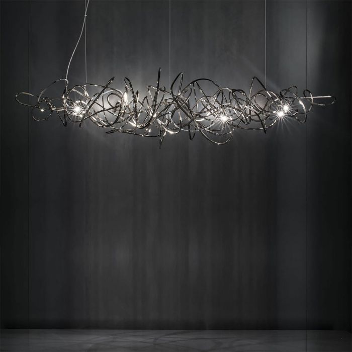 Nous ne marchons plus en ligne droite. Nos vies sont des collections dynamiques et entremêlées de relations, d’expériences et de voyages. Le designer Simone Micheli a créé un nouveau luminaire contemporain pour Terzani Doodle. Chaque griffonnage est unique, chaque suspension est fabriquée à la main par des artisans pour ressembler à un chemin aléatoire. Et, pour permettre de contrôler le voyage que Terzani souhaite vous faire entreprendre, chaque ampoule LED peut être placée n'importe où sur le luminaire, reflétant non seulement les choix que nous faisons dans la vie, mais offrant également une flexibilité particulière à Doodle.