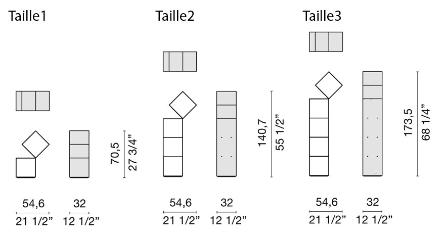 Taille 3 : L 54.6 x Prof. 32 x H 173.5 cm