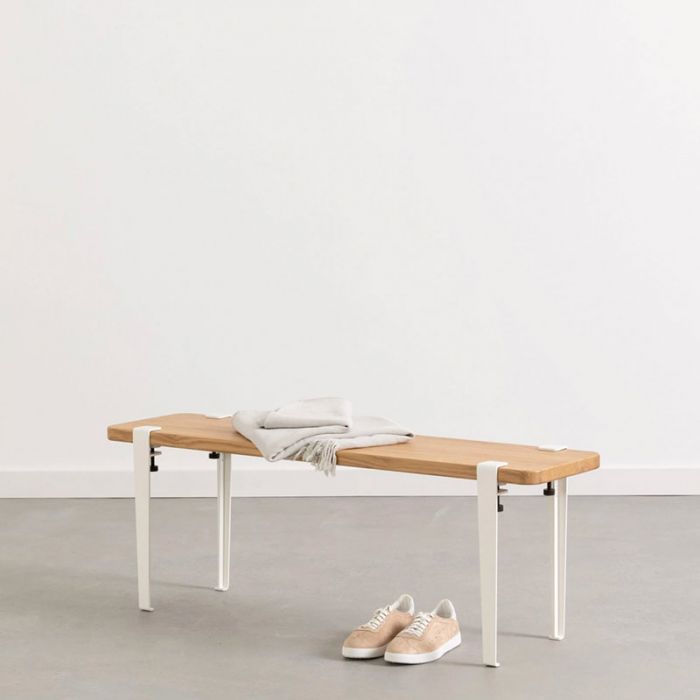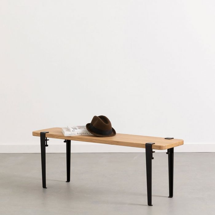 Le banc DUKE est composé d’un plateau en chêne massif 120x30cm et de 4 petits pieds TIPTOE hauteur 43cm. Grâce à son look épuré, le banc DUKE trouvera aussi bien sa place dans une entrée, en bord de table ou dans son salon. Le banc DUKE est un banc d’appoint pouvant accueillir 2 personne (environs 150Kg)