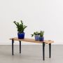Matériaux : pieds acier thermolaqué et plateaux en chêne massif européen et certifiés PEFC
