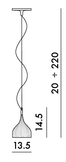 Une lampe au design simple et essentiel, disponible en deux versions : applique et lampe à suspension. L'applique est composée d'un diffuseur en forme de rosace en polycarbonate plissé, disponible en plusieurs couleurs, et d'une branche en métal chromé d'une longueur de 11 cm. La lampe à suspension É a un diffuseur en polycarbonate plissé et une rosace en métal chromé. Le fil de la lampe est réglable en hauteur, d'un minimum de 20 cm à un maximum de 220 cm.