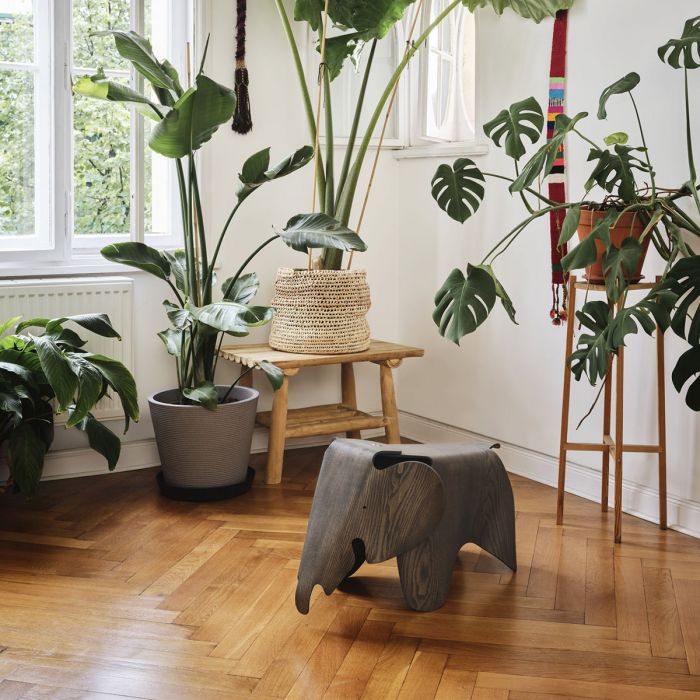 En 1945, Charles et Ray Eames ont créé un éléphant jouet en contreplaqué. Cependant, cette pièce n'a jamais été produite en série. L'un des prototypes a été exposé au Museum of Modern Art à New York en 1946 et existe encore aujourd'hui dans les archives de la famille Eames. Aprèsune édition limitée en 2007, Vitra a désormais lancé pour la première fois en 2018 la production en série du Eames Elephant en bois.