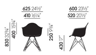 Le piètement dit « tour Eiffel » du siège DAR (Dining Height Armchair Rod Base), une construction complexe et gracieuse en fil d’acier, associe les formes élégantes et légères à une rigueur structurelle.