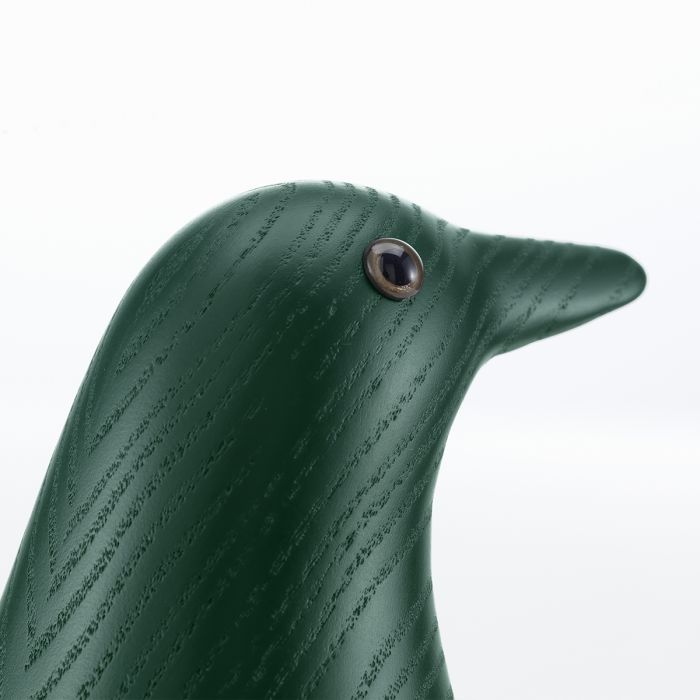 Charles et Ray Eames étoffaient l'aménagement intérieur de leur maison privée, l’Eames House, conçu à la manière d'un collage, par les nombreux objets et accessoires qu’ils rapportaient de leurs voyages. Au milieu du salon, on peut voir depuis plus de soixante-dix ans une sculpture d'oiseau en bois – un objet particulièrement apprécié par le couple, puisqu'il apparaissait souvent comme accessoire dans les photographies prises par Charles et Ray. Outre la version classique laquée noire en aulne massif, le Eames House Bird est également disponible en noyer. Les versions teintées en vert foncé ou en rose pâle font partie de la Eames Special Collection 2023 et sont uniquement disponibles jusqu'à la fin du mois de janvier 2024.