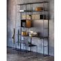 Module bureau single ou à intégration de la bibliothèque déjà existante EASY IRONY. Structure démontable et modulable. Montants H226cm en tube d’acier 15x15 mm et tablettes encastrables L 74 ou 104 cm en tôle d’acier courbée, épaisseur 1,5 mm. Peinture époxy noir cuivré sablé ou blanc gaufre. Plateau du bureau en tôle d’acier 104 x 55 x H 3 cm, sur demande avec trou passe-cables Ø 7 cm. Fond en tôle d’acier fixé avec aimants. Étagère au dessus du bureau disponible avec ou sans éclairage strip Led 12W inséré en profil d’aluminium, fixé avec magrets. Interrupteur on/off. Prévu pour filage au mur. Espace utilise entre les tablettes 36 cm.