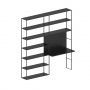 Modèle 3 : 4 montants H 226 cm + fond fixé avec aimants + plateau bureau + étagère au dessus du bureau + 2 tablettes L 104 cm + 14 tablettes L 74 cm