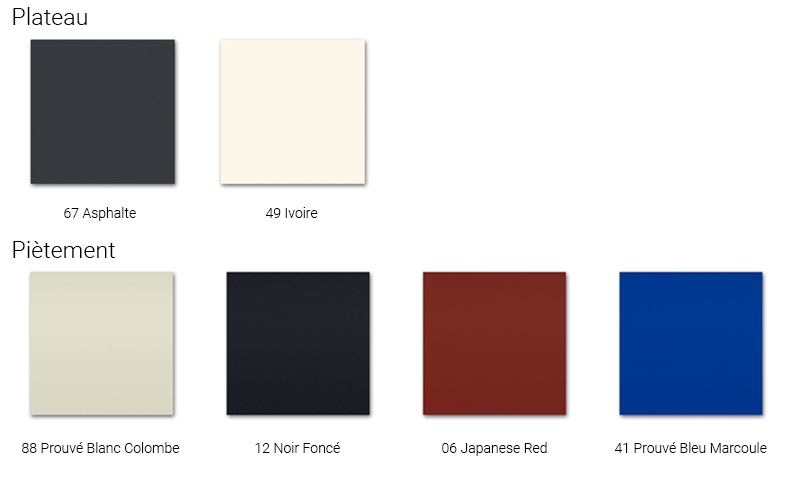 Piètement : noir foncé, blanc colombe, rouge japonais ou bleu marcoule