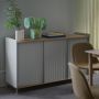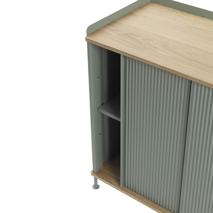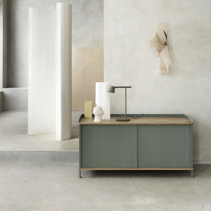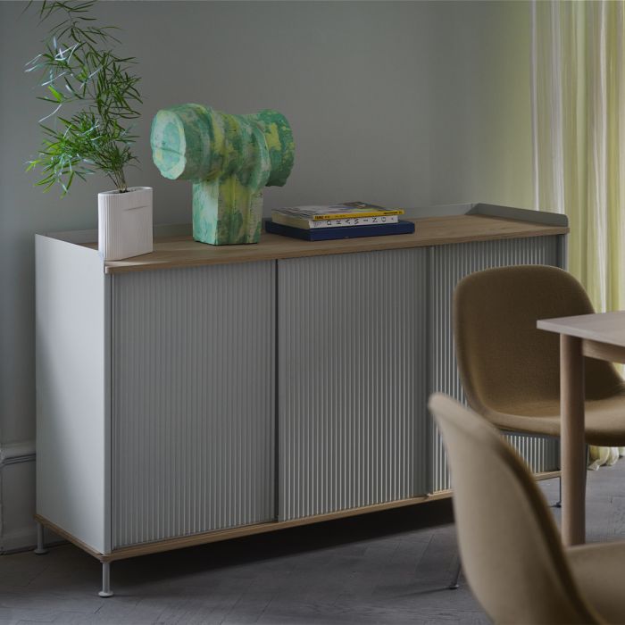 Le buffet Enfold combine la matérialité industrielle avec des références résidentielles pour une nouvelle perspective sur le stockage moderne. Fabriqué à partir d'un acier laqué qui enveloppe doucement son haut et son bas en chêne massif, le buffet Enfold fusionne des matériaux froids et chauds pour une expression unique, associée à l'expression vibrante et moderne de ses portes en acier striées. La conception flexible est disponible en quatre tailles, qui ont toutes des étagères réglables et des sorties de câble discrètes. Cela offre la possibilité de trouver la solution idéale pour votre espace, votre fonction et vos besoins - qu'il s'agisse d'une console multimédia, dans le couloir ou d'un buffet haut pour le rangement.