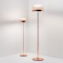 Equatore est la réinterprétation avec un goût contemporain des lampes classiques avec abat-jour en verre. Si, dans les abat-jour traditionnels, le diffuseur contient la source lumineuse, dans cette famille de lampes, il est paradoxalement et suggestivement vide et l’effet lumineux est produit par deux disques lumineux situés à l’intérieur d’une bande métallique centrale, visible sur l’abat-jour et rappelant la ligne de l’Équateur. La lumière produite par les led, grâce aux écrans intérieurs disposés en couches, se distribue régulièrement sur la surface des disques, en les faisant rayonner d’une lumière magique, le disque inférieur produit une émission lumineuses vers le bas, tandis que le disques supérieur éclaire la calotte de verre, pour donner une diffusion douce de la lumière. Disponible en versions de table, de sol et à suspension, en deux mesures.