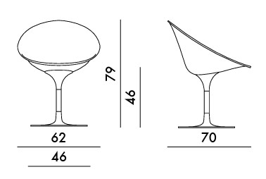 Ero's est un petit fauteuil enveloppant ayant la forme d’un oeuf coupé, caractérisé par une combinaison raffinée des finitions et par une utilisation savante de la couleur. La qualité et la richesse des matériaux utilisés tant pour la coque que pour la base le rendent particulièrement élégant et sophistiqué. Ero's est idéal pour la maison, dans la salle à manger ou le séjour, mais il trouve aussi sa place dans les bureaux, comme fauteuil de représentation dans les salles de conférence ou dans les salles d’attente. Le Eros's 4835 se repose sur une base tournante à soutien central en aluminium poli. Diverses variantes chromatiques du polycarbonate existent tant dans la version transparente qu’opaque.