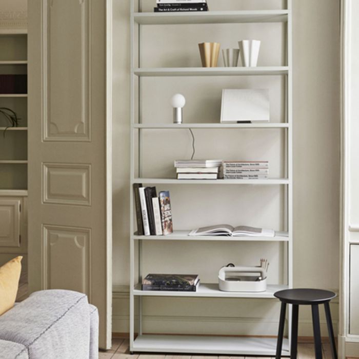 Étagère 701 New Order de Hay. Le système modulaire ouvert de New Order comprend des éléments en aluminium interconnectés pour créer des solutions de stockage personnalisées pour des espaces de travail et des espaces de vie spécifiques. Avec sa conception simple et modulaire, la construction à huit étagères de New Order offre une bibliothèque flexible et esthétique pour la maison ou le bureau. La conception ouverte à plusieurs étagères permet à l'utilisateur d'afficher et d'organiser une large gamme d'objets, tout en offrant un accès facile de tous les côtés. La grille en aluminium est disponible dans différentes options de couleur, avec la possibilité d'ajouter des panneaux, des portes, des plateaux et des tiroirs pour personnaliser l'apparence et la fonctionnalité, créant des combinaisons et des applications infinies.