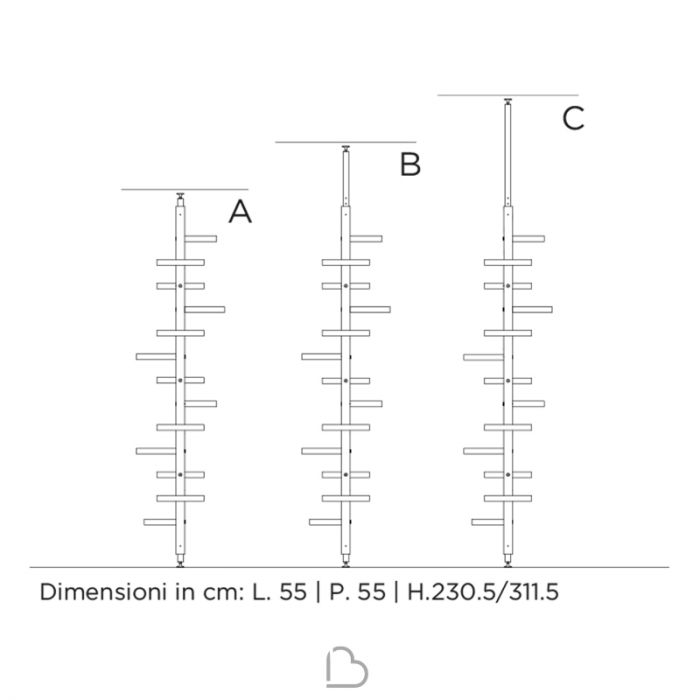B : H (min) 253,5 (max) 283,5 x larg. 55 prof. 55 cm (+14,75 cm)