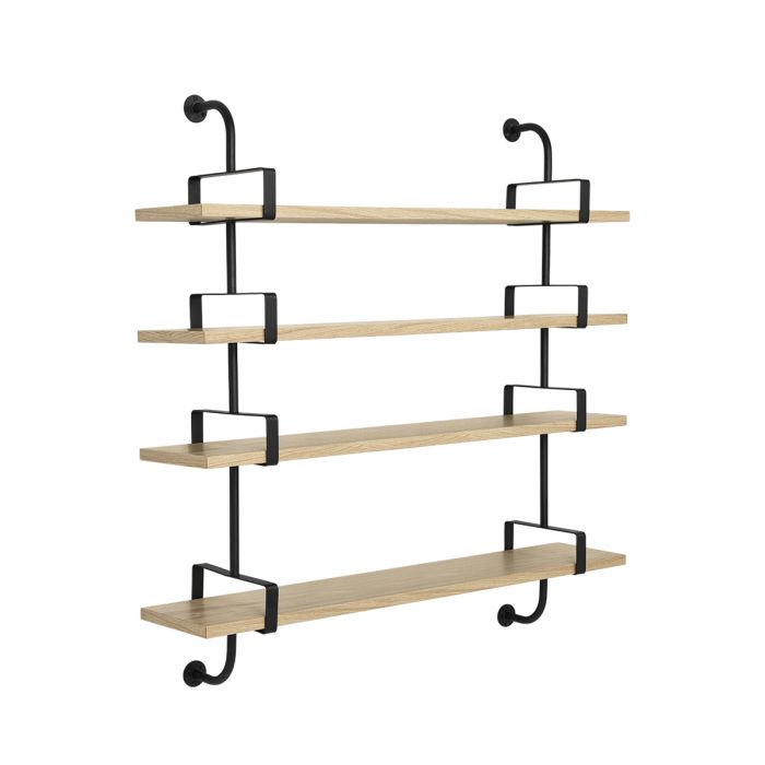 Matériaux : frêne teinté noir, chêne ou noyer, métal laqué noir