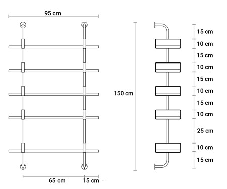 Étagère Démon 5, Larg. 95 cm de Gubi par Mathieu Matégot. L'étagère Démon, ou le Biblio-Démon tel qu'il est répertorié dans les anciens croquis de Mategot, faisait partie d'un «plan d'exécution de la bibliothèque» - le modèle d'une bibliothèque et d'une étude intérieures. Le système d'étagères modulables, conçu en 1954 par Mathieu Matégot, peut être appliqué de multiples manières adaptées à toutes les maisons et espaces où cette dimension supplémentaire d'esthétique pour le rangement mural est recherchée.