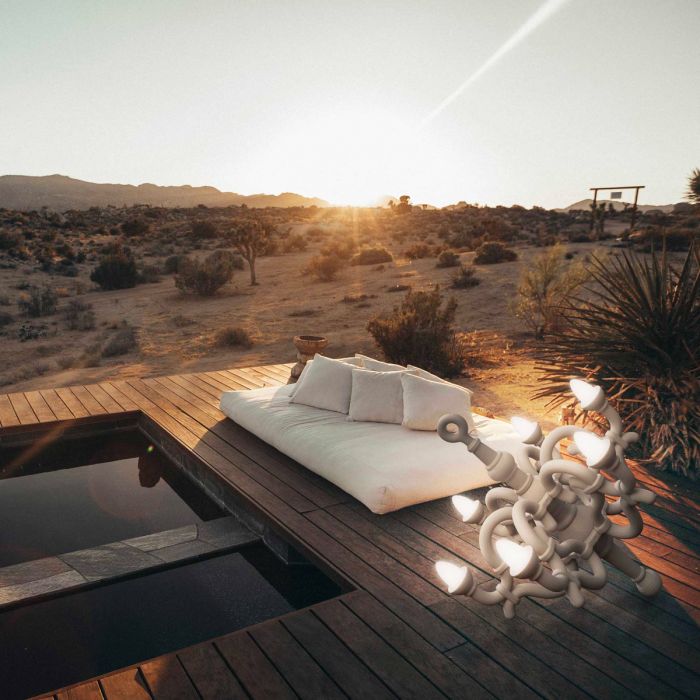 Fallen chandelier de Qeeboo par Studio Job. Le lustre Fallen est un lampadaire de taille XL adapté aux environnements intérieurs et extérieurs, conçu par Studio Job. Influencé par les courbes classiques Thonet du XIXe siècle, cet objet hors d'échelle de 2 mètres de diamètre voyage à travers les temps pour être le protagoniste exceptionnel de chaque lieu où il vit et vous accompagner dans un rêve d'élégance intemporel.