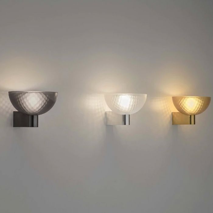L’enchantement de l’applique Fata est créé par l’abat-jour et une nouvelle technologie de gravure et de moulage qui permet de réfléchir la lumière de mille manières en fonction de l’angle de vue. Fata s’allume et se cache immédiatement dans de surprenants jeux de lumière, comme une clochette magique qui apporte mystère et joie à la maison. L’applique en forme de bol est disponible en trois couleurs - ambre, fumé et transparent.