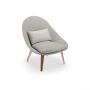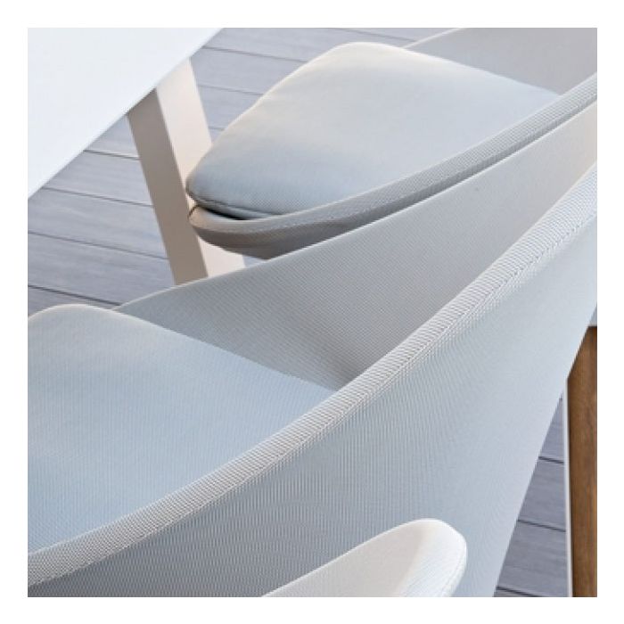 Le fauteuil bas vanity s'inspire des fifties, avec l'élégance de ses courbes et son piètement éffilé, il amène le vintage dans nos extérieurs. La coque ainsi que les coussins sont recouverts d’un superbe tissu Sling au tissage raffiné. Subtil et original, son piètement mise sur un mariage multi-matières : aluminium blanc et teck naturel. Cette toile est facile à entretenir, souple et résistante. Hypoallergénique, elle bénéficie d’un traitement antifongique et résiste aussi bien à l’humidité qu'aux moisissures. Ce fauteuil bas Vanity présente une qualité et une robustesse exceptionnelle.
