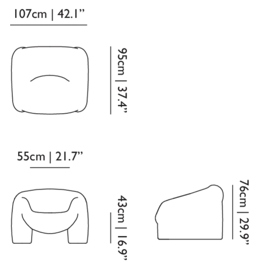 H 76 x larg. 107 x Prof. 95