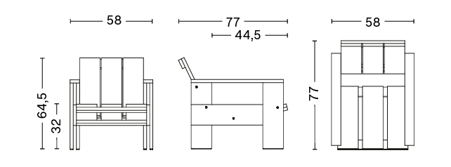 Initialement conçue pour utiliser les caisses d’expédition en bois excédentaires de l’architecte et designer néerlandais Gerrit Rietveld en 1934, la collection Crate a été relancée dans le cadre d’un collaboration Rietveld Originals X HAY. Fabriquée dans le respect du design original, la chaise Crate Lounge Chair partage les mêmes proportions équilibrées avec précision et une construction transparents pour minimiser les coûts de production et optimiser le processus d’assemblage. Dotée de proportions basses avec un dossier légèrement incliné et un siège avec des accoudoirs de soutien, la simplicité et la conception spatiale de la chaise reflètent le style architectural du design - offrant fonctionnalité et confort sans encombrer l’espace Fabriquée en pin massif, avec une finition laquée à base d’eau dans différentes options de couleur, la chaise longue Crate convient à une multitude de décoras extérieurs.