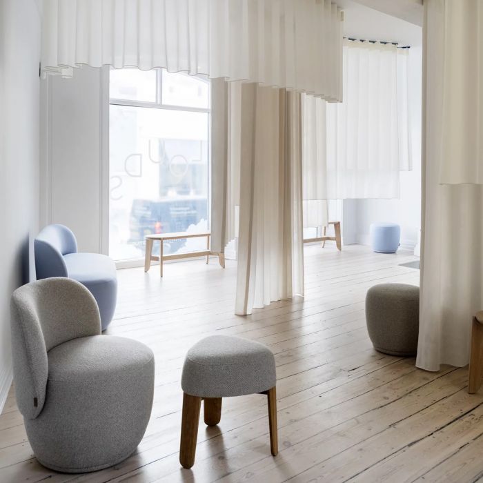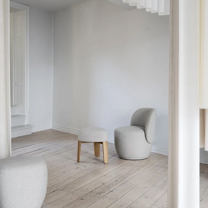 Une forme arrondie, accueillante et confortable. C'est ainsi que l'on peut décrire la série de meubles rembourrés KUON. Composé de 2 tabourets, en chêne clair et teinté, de 2 fauteuils, avec et sans fonction pivotante, et d'un 2 places, diverses utilisations possibles sont proposées. La série conçue par le designer japonais Kazushige Miyake avec un tissu bouclé durable.