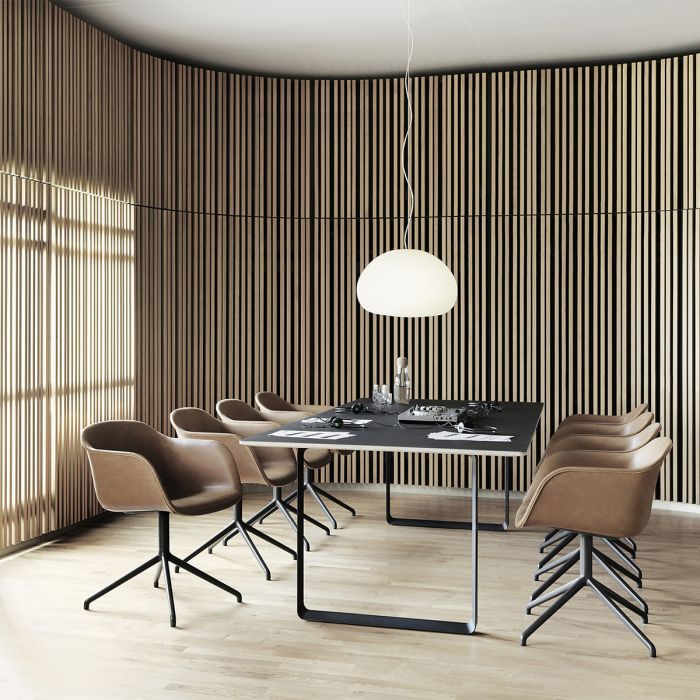 La chaise Fiber est faite d'un nouveau matériau innovant d’enveloppe de plastique et fibres de bois recyclables. Sa coque aux formes minimalistes est moulée dans un matériau composite 100% recyclable composé de fibres de bois et de plastique. Avec un oeil pour le détail, chaque ligne et chaque courbe a été conçue pour équilibrer un maximum de confort dans un minimum d'espace.