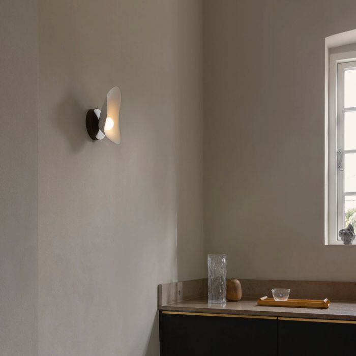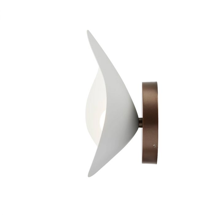 Florii 1 de Nuura par Jessica Vedel. Florii 1 Wall est une applique murale qui ajoute une touche de sophistication à tout environnement nécessitant un éclairage chaleureux et accueillant. Depuis une plaque arrière en bronze foncé, un élégant abat-jour en métal blanc se déploie, créant une interaction captivante entre la lumière et l'ombre. Florii 1 Wall est doté d'une technologie LED intégrée qui crée un éclairage efficace et durable qui peut être facilement remplacé sans avoir besoin d'outils et est idéal pour les couloirs, les cuisines et les environnements où une source d'éclairage décorative est nécessaire.
