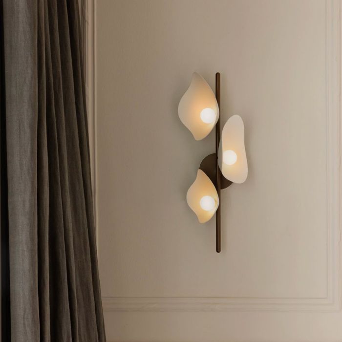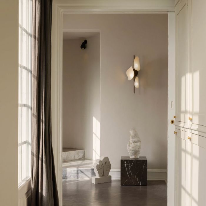 Florii 3 de Nuura par Jessica Vedel. Florii 3 Wall est une applique murale oblongue à la silhouette captivante et raffinée. La tige métallique linéaire en finition bronze foncé crée un contraste profond avec les élégants abat-jour en métal blanc qui se déploient gracieusement avec une lueur chaleureuse et accueillante. La sculpturale Florii 3 Wall se prête parfaitement aux couloirs et aux salles de bains, encadrant les miroirs avec sa présence longue et lumineuse. La LED intégrée crée un éclairage efficace et durable qui peut être facilement remplacé sans avoir besoin d'outils.