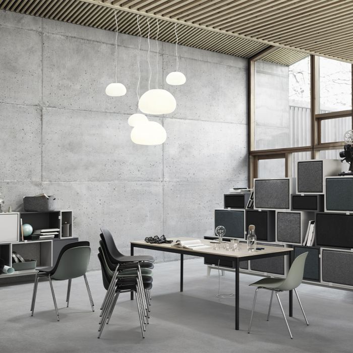 Suspension design Fluid de Muuto, créé par le trio suédois Claesson, Koivisto et Rune. Elle offre un élément design élegant pour la maison, le bureau, ou un restaurant. Avec sa forme douce et son éclat, elle a un caractère non-envahissant qui s'intègre n'importe où.