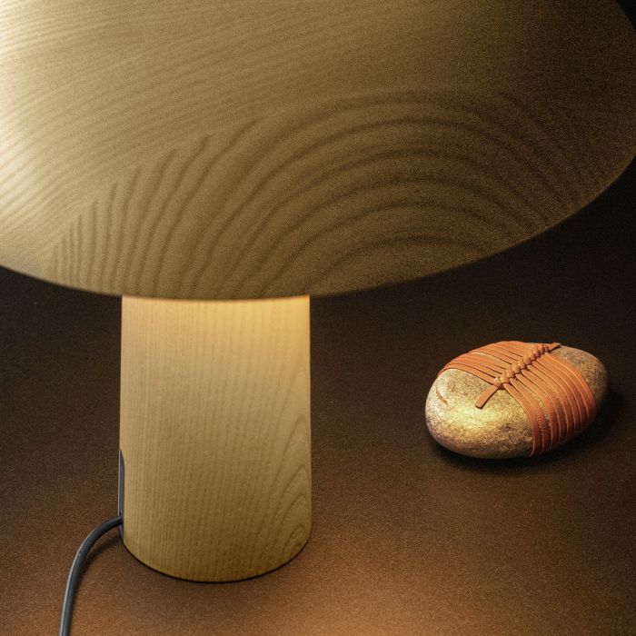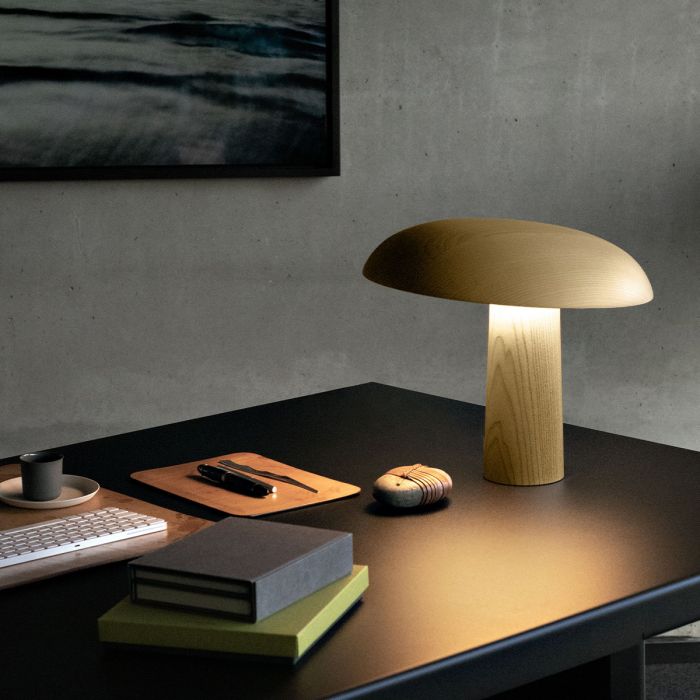 Avec son design Forma, Christian Haas interprète l'archétype des années 40/50 d'une lampe de bureau classique en bois massif. Il a réduit la forme originale sans la banaliser et a ainsi créé une silhouette incomparable : l'asymétrie de la base et l'abat-jour en forme de dôme composé de bandes de bois massif collées donnent l'impression que le design s'est développé de manière organique. La chaleur et la sensualité inhérentes au matériau naturel dont est fabriqué Forma, le frêne ou le noyer, confèrent au nouveau luminaire son caractère chaleureux. Un bouton-poussoir presque invisible dans la base garantit une utilisation facile. Le grand abat-jour légèrement incliné avec un panneau diffuseur satiné et un anneau LED blanc chaud à intensité variable diffuse une lumière agréable et non éblouissante. Forma est polyvalent et fait bonne figure sur un bureau ainsi que sur un buffet, une étagère ou une table de chevet.