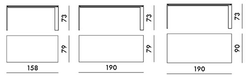 Taille 2 : L 190 x Prof. 79 x H 73 cm
