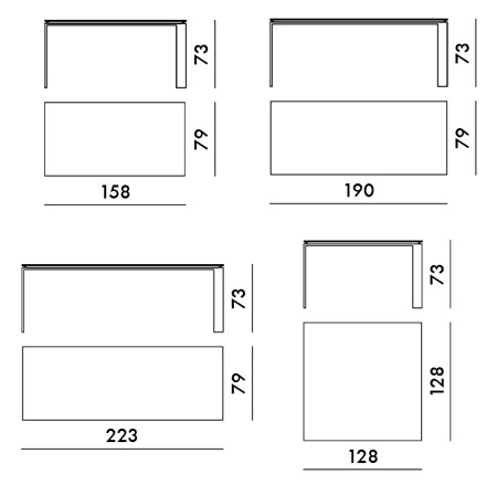 Une table fonctionnelle et raffinée au design rigoureux et géométrique. Grâce à une élégante solution conceptuelle, la position du mince plateau permet de placer facilement des blocs à tiroirs ou de rangement pour supports informatiques. Il est possible d'y accoler plusieurs éléments afin de former des îlots opérationnels au sein d'un bureau. Four est disponible avec plateau stratifié d'une épaisseur de 2,5 cm associé à la structure en acier verni.