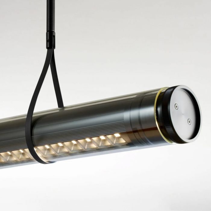 Fris de la marque Marset par Joan Gaspar. Dessiner de fins faisceaux de lumière dans un espace, chacun d’eux pointant dans n’importe quelle direction. C'est pourquoi nous avons créé Fris, un système d'éclairage polyvalent, disponible en version mur/plafond ou suspension, qui permet de combiner plusieurs unités de différentes tailles et positions, chacune dirigeant son propre faisceau lumineux. Sa conception consiste en un tube de verre qui enveloppe la lumière. Ce qui le rend unique est que le verre protège non seulement la lumière, mais assure également une fonction mécanique, suspendant l'ensemble du système et permettant à la lampe de tourner et d'orienter la lumière dans une certaine direction. Le verre est ainsi à la fois matériau et fonction. À travers le verre transparent, nous voyons l'intérieur de la lampe, composé de deux profils : l'un comprend la source lumineuse et l'autre agit comme une parabole, projetant une lumière vive et intense. Fris propose un design très polyvalent et fonctionnel pour un éclairage précis de tout type de projet. Un système ingénieux qui s'attaque avec audace à un problème jusqu'alors non résolu : disposer d'un ensemble de lampes où chacune dirige la lumière individuellement.