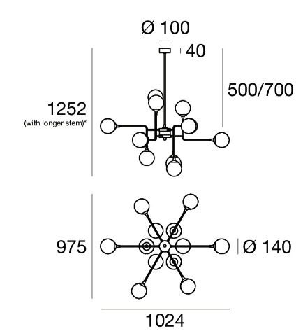 La suspension Galassia, disponible avec six ou douze lampes, conserve le charme des années 1950 grâce à la combinaison du laiton avec la dorure galvanique de la structure et les sphères en verre soufflé triplex blanc. Une collection précieuse qui enrichit l'espace d'une touche rétro sophistiquée.