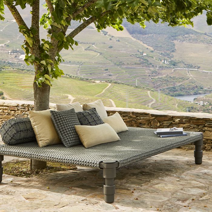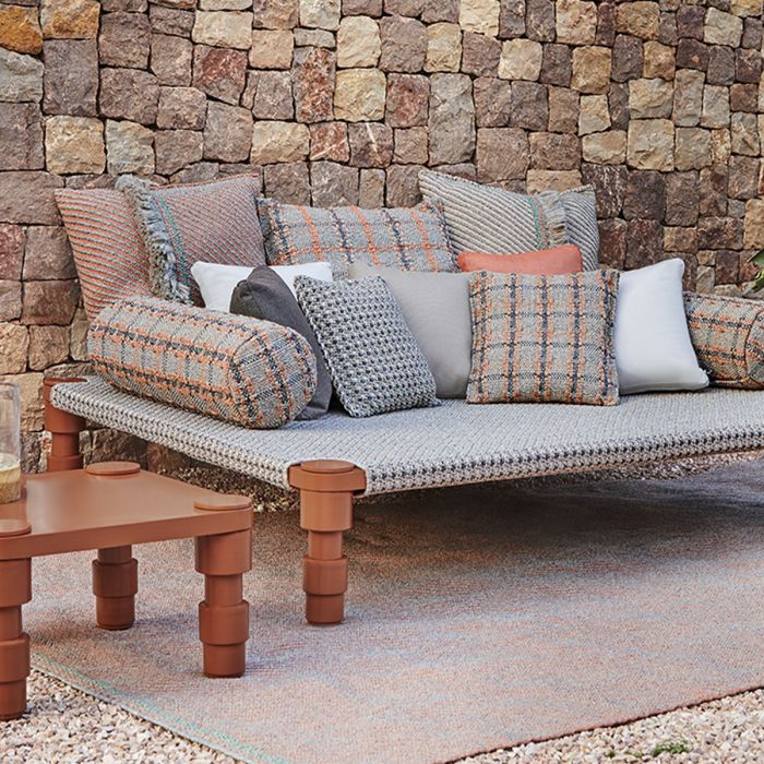 Cette gamme de lit fait partie de la collection Garden Layers, il s’agit de coussins, rulos, tables, tapis d’extérieur et d’intérieur.