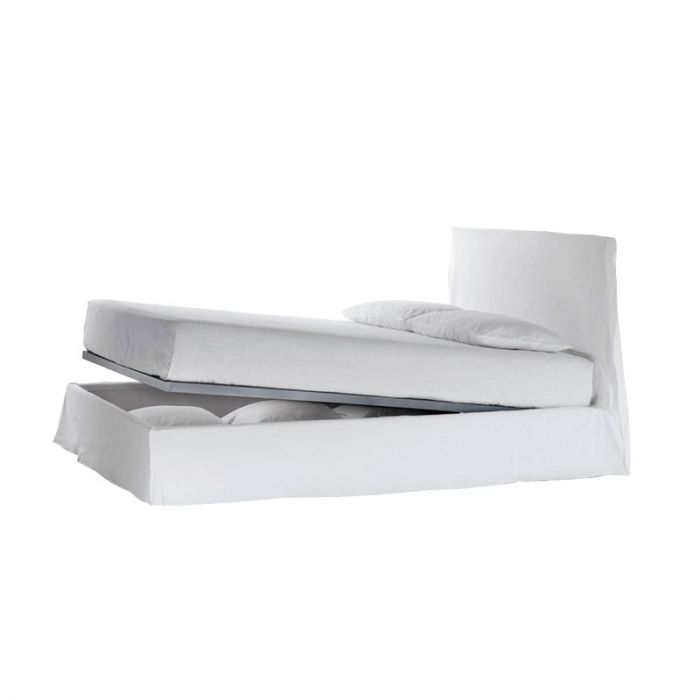 Ghost 80 de Gervasoni par Paola Navone. Lit, structure en multiplis et bois massif, démontable. Rembourrage en mousse polyuréthane, déhoussable.