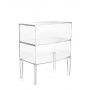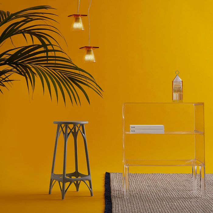 Ghost buster est la première commode éditée par Kartell. Ghost buster c'est aussi le record mondial du plus grand monobloc platique jamais produit dans le secteur de l'ameublement. Redessinée par Starck, la commode évoque les formes du meuble classique mais sa matière et sa transparence font de lui une pièce plus que jamais contemporaine. Sur la surface lisse de cette commode courent des angles et des courbes, des lignes droites et des sinuosités donnant vie à un captivant jeu de perspectives et de reflets presque magiques. Ghost Buster est composée de trois rayons ouverts sur le devant et soutenue par quatre pieds bi-faces.