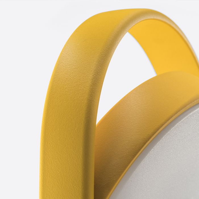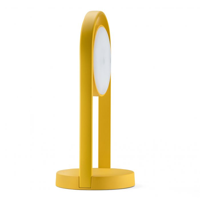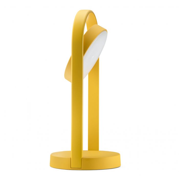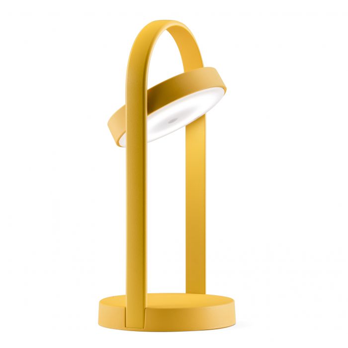 Giravolta est une lampe designée par Alberto Basaglia et Natalia Rota Nodari pour la marque Pedrali. C’est une lampe sans fil au design contemporain idéale pour un usage en intérieur comme à l’extérieur. La base lumineuse est composée de deux disques en plastique insérés dans un arc en aluminium extrudé, où le diffuseur LED y est intégré. La base lumineuse dirige la lumière sur un axe à 360°. Cette partie de la lampe contient également la batterie en lithium, le bouton d’alimentation ainsi qu’une prise micro USB. En option un aimant dans la base permet de fixer la lampe sur des plateaux en métal ou au mur.