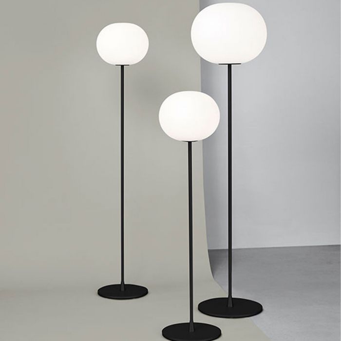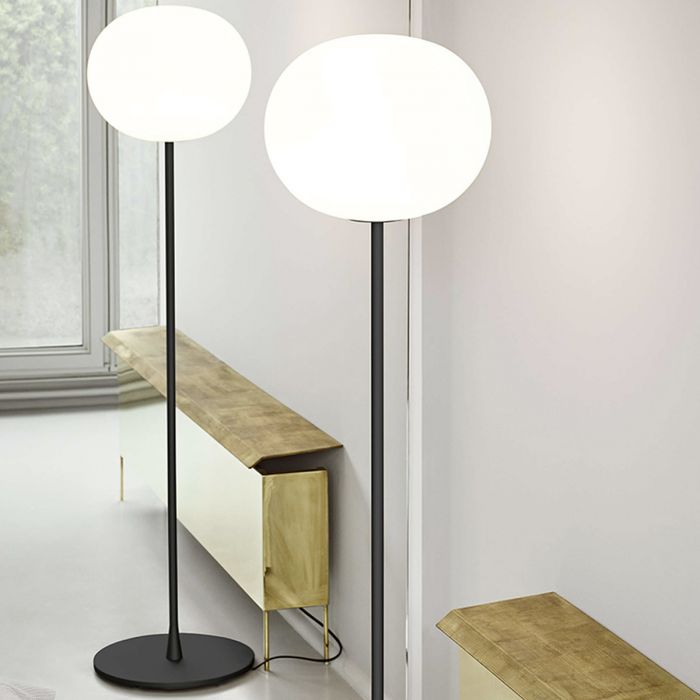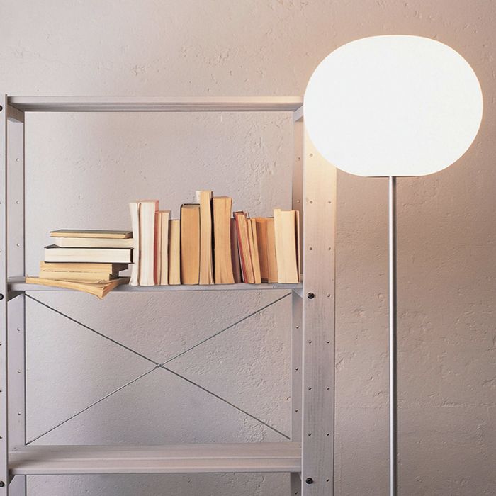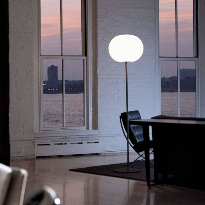 GLO BALL F3 est un lampadaire à lumière diffuse crée par Jasper Morrison en 1998. Ce lampadaire est composé d'un diffuseur blanc opalin posé délicatement sur une structure en acier. Ce lampadaire éclairera votre intérieur d'une lumière douce et chaleureuse.