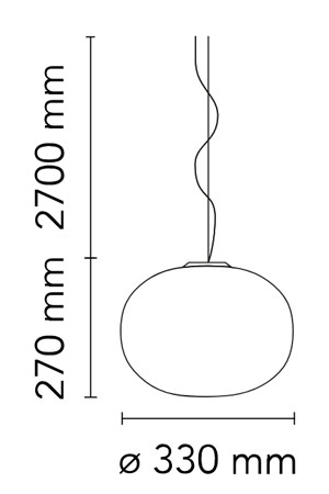 Matériaux : Diffuseur en verre opalin gainé, soufflé à la bouche, et acidifié, support diffuseur en polycarbonate transparent, câble en acier
