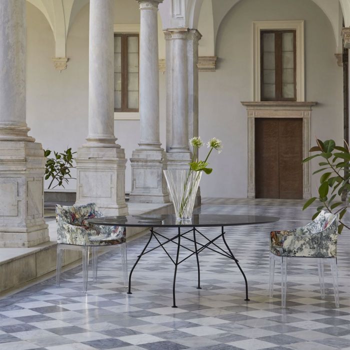 Table Glossy Marbre round de Kartell par Antonio Citterio.