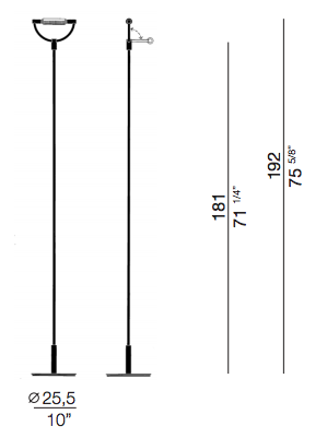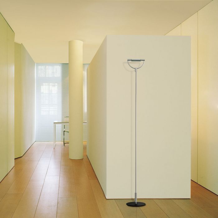 Gradi est caractérisé par un petit arc en chrome, et un cylindre de verre de borosilicate traité avec des émaux spéciaux qui inclut tout seul les différentes fonctions de réflecteur, écran anti-éblouissant et protection de la lampe. Equipements halogènes d’intérieur pour une lumière indirecte et de résistance thermique élevée.