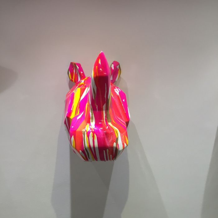 Grogny se distingue par ses finitions qui lui confèrent un impact visuel hors du commun. Qu'il soit proposé en laque monochrome (blanc pur, noir intense) pour un effet minimaliste, ou dans une finition Pop Art (peinture coulante et colorée, comme illustré), il devient un point focal immédiat. Qu'il soit seul ou en composition murale (par exemple, avec le cerf 'Duffy'), ce trophée d’Artypopart, cet animal de la savane, ajoute une touche audacieuse et décalée à votre décoration. C'est l'union parfaite entre l'art de la sculpture, l'hommage à la nature et l'esprit avant-gardiste de SJ.