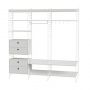 Avez-vous la chance d'avoir un couloir spacieux? Alors nous avons la solution parfaite pour vous. Cette combinaison a vraiment tout pour plaire. Tiroirs, étagères à chaussures, étagères métalliques avec bords hauts et bas et de nombreuses possibilités de placer les accessoires, tringles et crochets, où vous préférez.