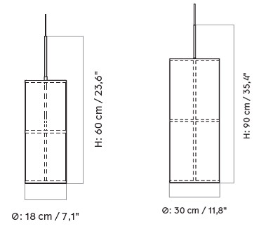La suspension de la collection est créée avec la même forme de colonne que le lampadaire et la lampe de table, soigneusement recouverte d’un tissu translucide qui révèle la structure graphique à l’intérieur et suspendue au plafond par un cordon textile. Diffusant la lumière ambiante dans une pièce, il constitue une suspension utile au-dessus d’une table à manger dans une zone de réception ou une chambre d’hôtel.