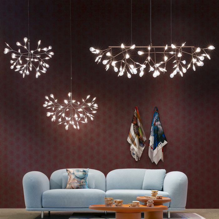 La nature rencontre la technologie dans Heracleum III de Bertjan Pot. Cette lampe LED aérée s'inspire de la plante à fleurs du même nom qui peut atteindre 5 mètres de haut. Les feuilles blanches d'Heracleum III se ramifient à partir d'une branche, créant une structure naturelle très technique grâce à une technique de revêtement de couches conductrices appelée Electrosandwich du studio Marcel Wanders. Heracleum III est disponible en deux tailles et quatre couleurs différentes. Compatible avec notre interrupteur mural sans fil, pour une gradation rapide et facile qui vous donne un contrôle total sur la puissance lumineuse.